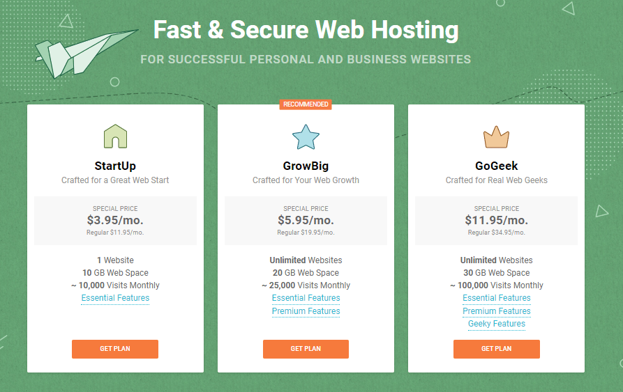 Siteground Prices, Hosting Plans: